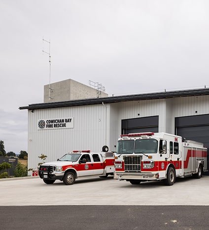 In partnership with the Cowichan Bay Improvement District, Integrity managed the community’s new, ground-up volunteer fire hall. This $14.6 million seismically rated, FireSmart cladding-compliant facility represents a major improvement from the original hall built in 1978. It enhances safety, supports the health of first responders, and ensures they’re equipped to continue serving the community they love.